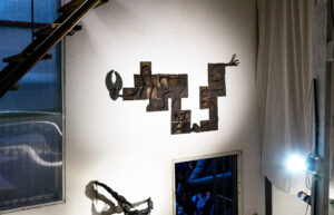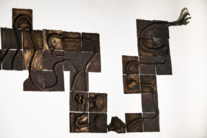 En sala, Mejías presenta la obra ‘Brote’ que, en palabras de la artista, “es una pieza que aborda el cuerpo como elemento de acogida y protección, que -aun entre quiebres- tiene el deber de sostener, cubrir y cuidar a otros”. La instalación realizada en cerámica se hizo a la medida de los azulejos de la cocina de Mejías, generando una “pared incompleta que contiene elementos relacionados al nido, como huevos y patas”.